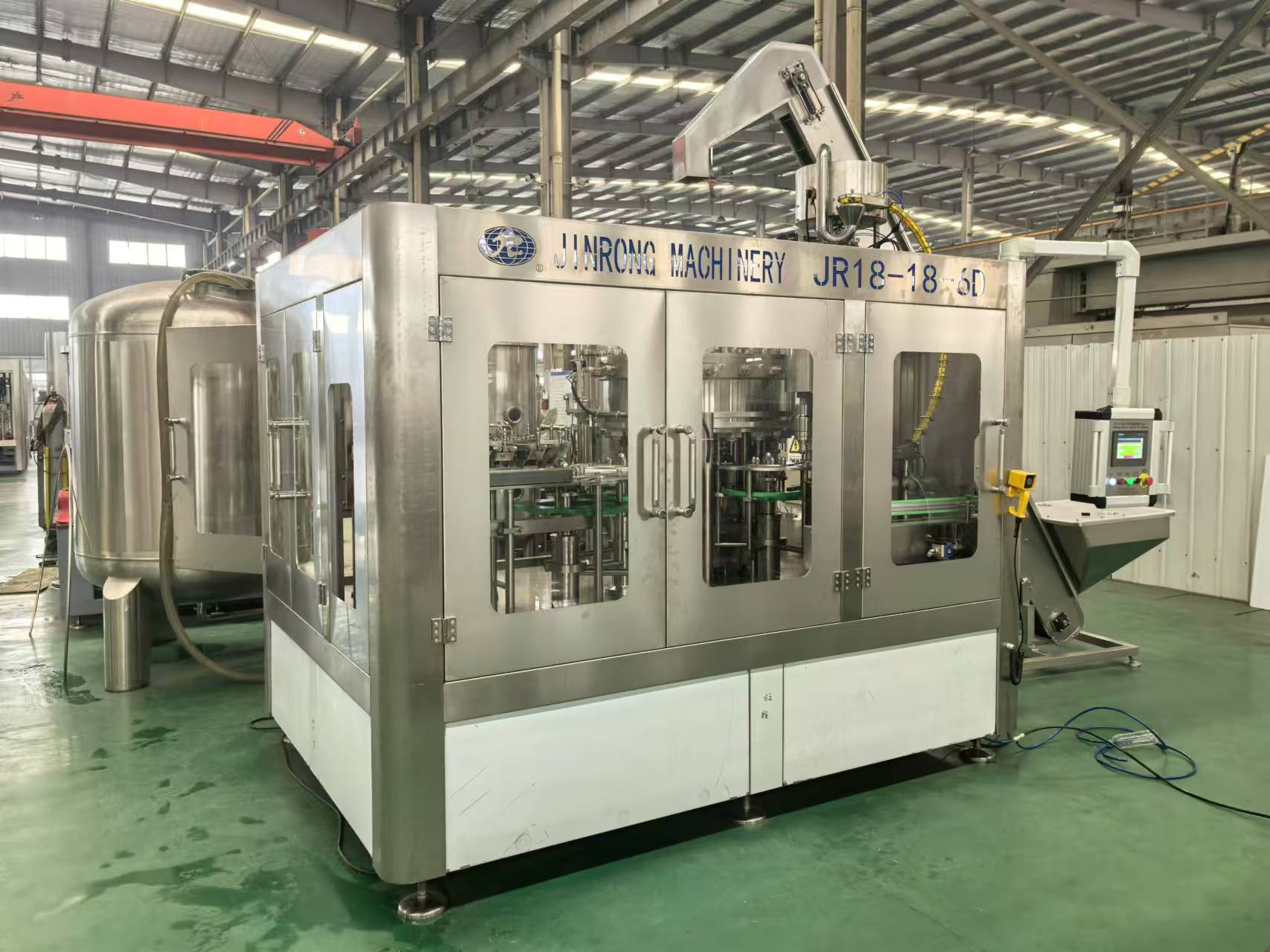 金榮飲料機械廠家制造供應(yīng)的全套飲料生產(chǎn)線、果汁生產(chǎn)線、碳酸飲料生產(chǎn)線、小瓶礦泉水灌裝設(shè)備、大瓶水生產(chǎn)線、桶裝水生產(chǎn)線、純凈水灌裝機設(shè)備、瓶裝礦泉水灌裝生產(chǎn)線、易拉罐啤酒灌裝機等系列產(chǎn)品主要運用在純凈水,礦泉水,果汁,茶,熱灌裝飲料,功能飲料,含汽飲料,碳酸飲料,啤酒等液體飲料灌裝生產(chǎn)。其供應(yīng)的灌裝生產(chǎn)線可配套全自動吹瓶機、水處理設(shè)備、前處理設(shè)備、飲料殺菌設(shè)備、貼標(biāo)機、包裝機等相關(guān)配套機械設(shè)備。金榮多年來的設(shè)備研發(fā)和制造經(jīng)驗,讓金榮機械為飲料生產(chǎn)企業(yè)和水廠等提供了穩(wěn)定的全套灌裝生產(chǎn)線設(shè)備。